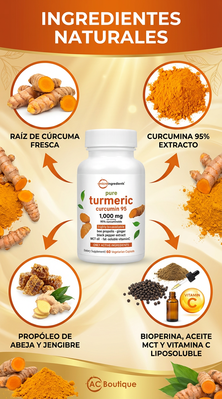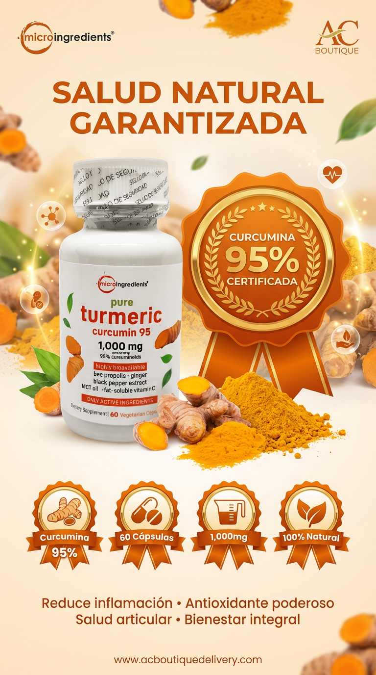 Máxima Pureza: Extracto de curcumina al 95%, la concentración más alta para resultados reales.