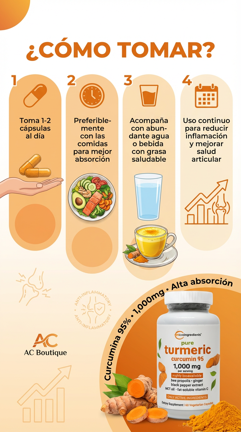 Eleva tu bienestar con un suplemento de grado profesional. Nuestras cápsulas de Cúrcuma no son solo un extracto común; es una fórmula avanzada de Microingredients diseñada para maximizar la absorción y el soporte articular.
